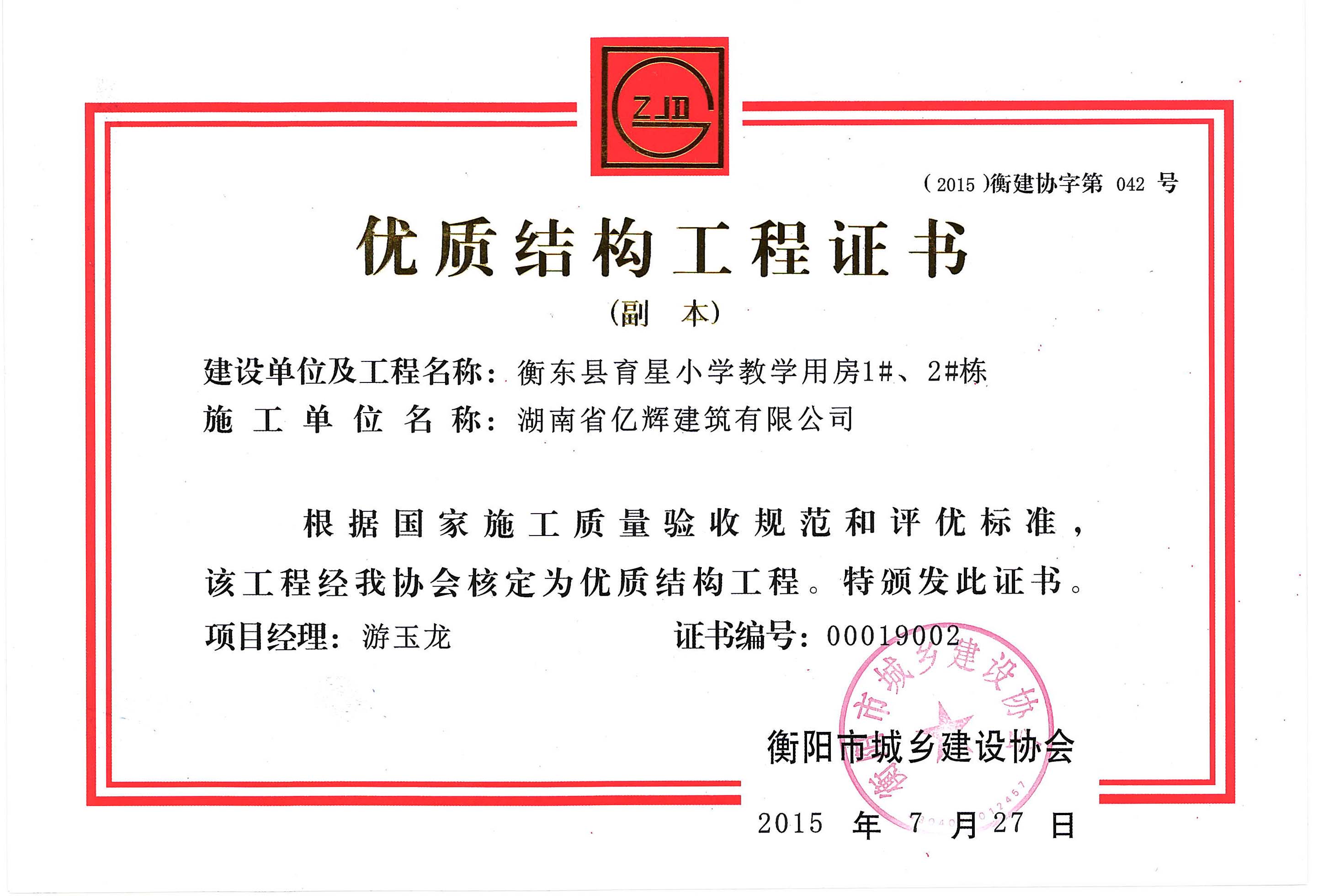 優(yōu)質(zhì)結(jié)構(gòu)工程證書