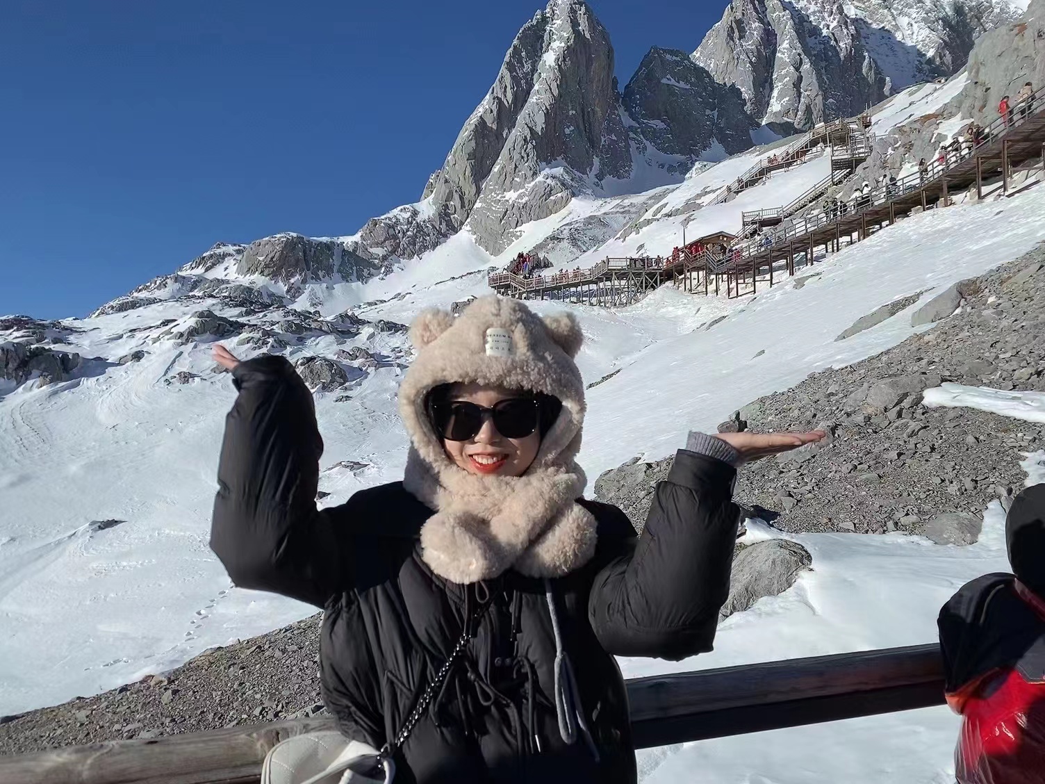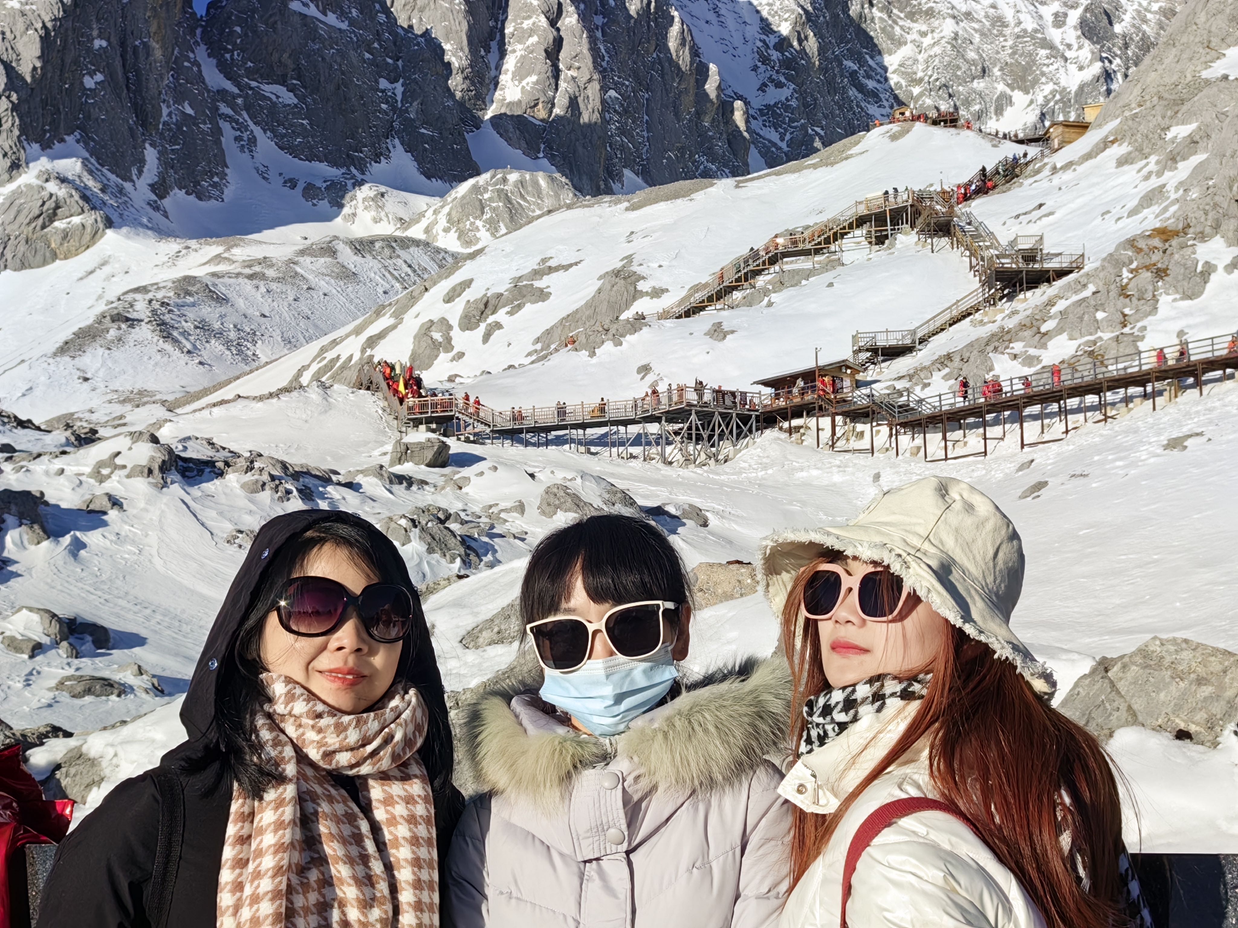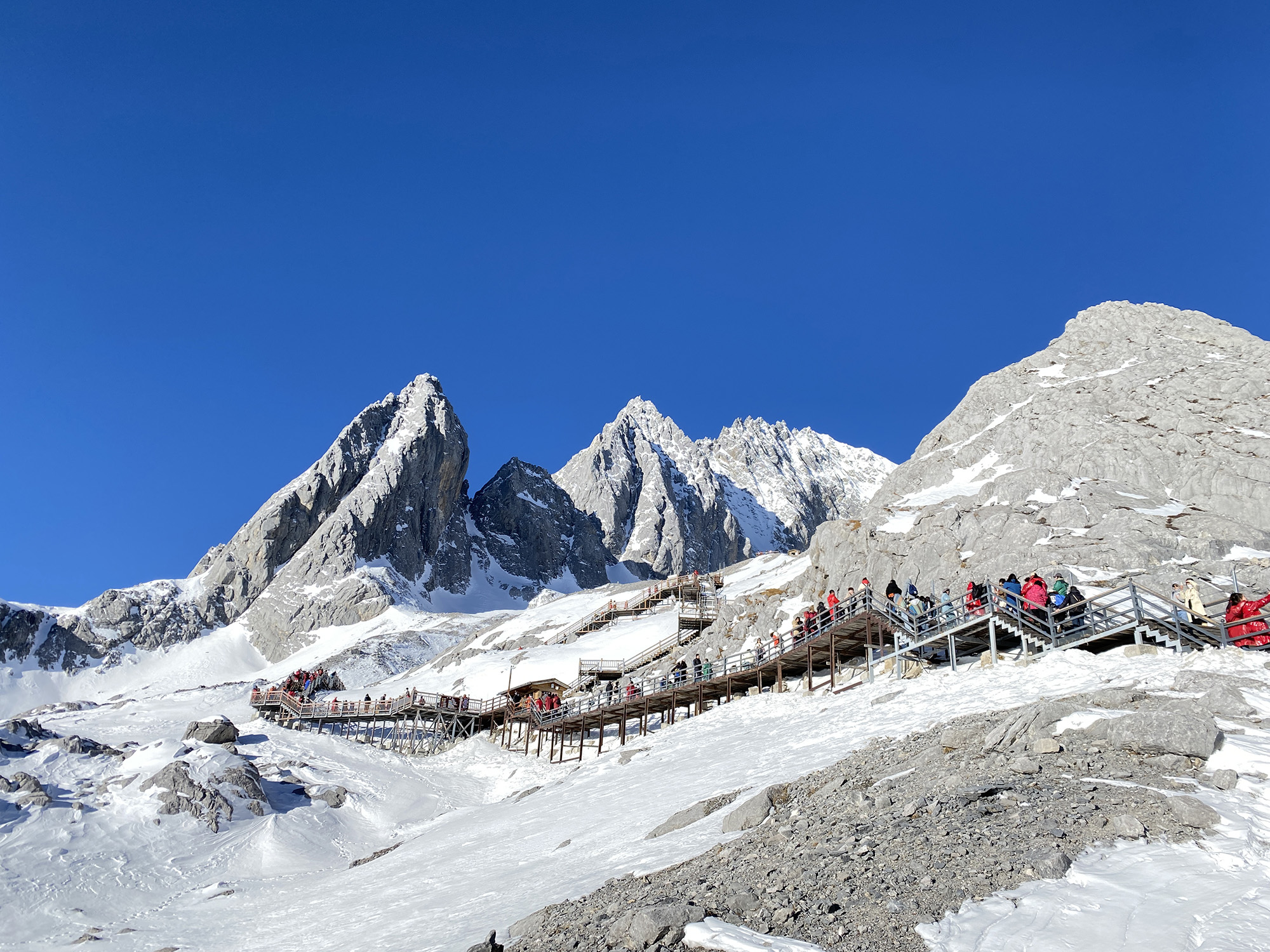 從黃花機(jī)場出發(fā),飛過祖國水墨山河,到達(dá)麗江。一天的休息與調(diào)整,懷揣著期待,我們前往險(xiǎn)奇美秀的玉龍雪山。來到玉龍雪山就被它那不凡的氣勢所震撼:13座山峰高聳入云,猶如13柄閃著寒光的巨劍直刺藍(lán)天,又似13根擎天立地的巨柱并列大地,再凝目欣賞,它更像是一條矯健的玉龍從碧空蜿蜒而來,氣勢磅礴,壯麗無比,在碧藍(lán)天幕和悠悠白云的映襯下,展露著一種雄奇壯麗的美。