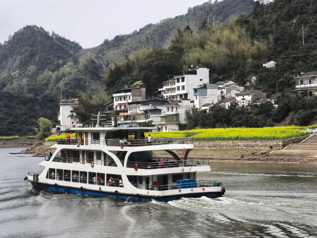 乘船游覽新安江山水畫廊時(shí),仿佛置身于一幅流動(dòng)的山水畫卷之中。兩岸徽派古民居點(diǎn)綴在青山綠水之間,素有“東方多瑙河”之稱的新安江緩緩流淌,江風(fēng)拂面,帶來絲絲涼意。春季時(shí),兩岸數(shù)千畝油菜花盛開,金黃的花海與碧綠的江水相互映襯,美不勝收。途中,大家還欣賞了《漁風(fēng)千古情》大型實(shí)景演出,演出以古代“九姓捕魚”為故事背景,生動(dòng)地展現(xiàn)了當(dāng)年九姓族人用傳統(tǒng)方式和漁具捕魚的熱鬧場(chǎng)景,讓大家領(lǐng)略到了古代徽州的民俗風(fēng)情。