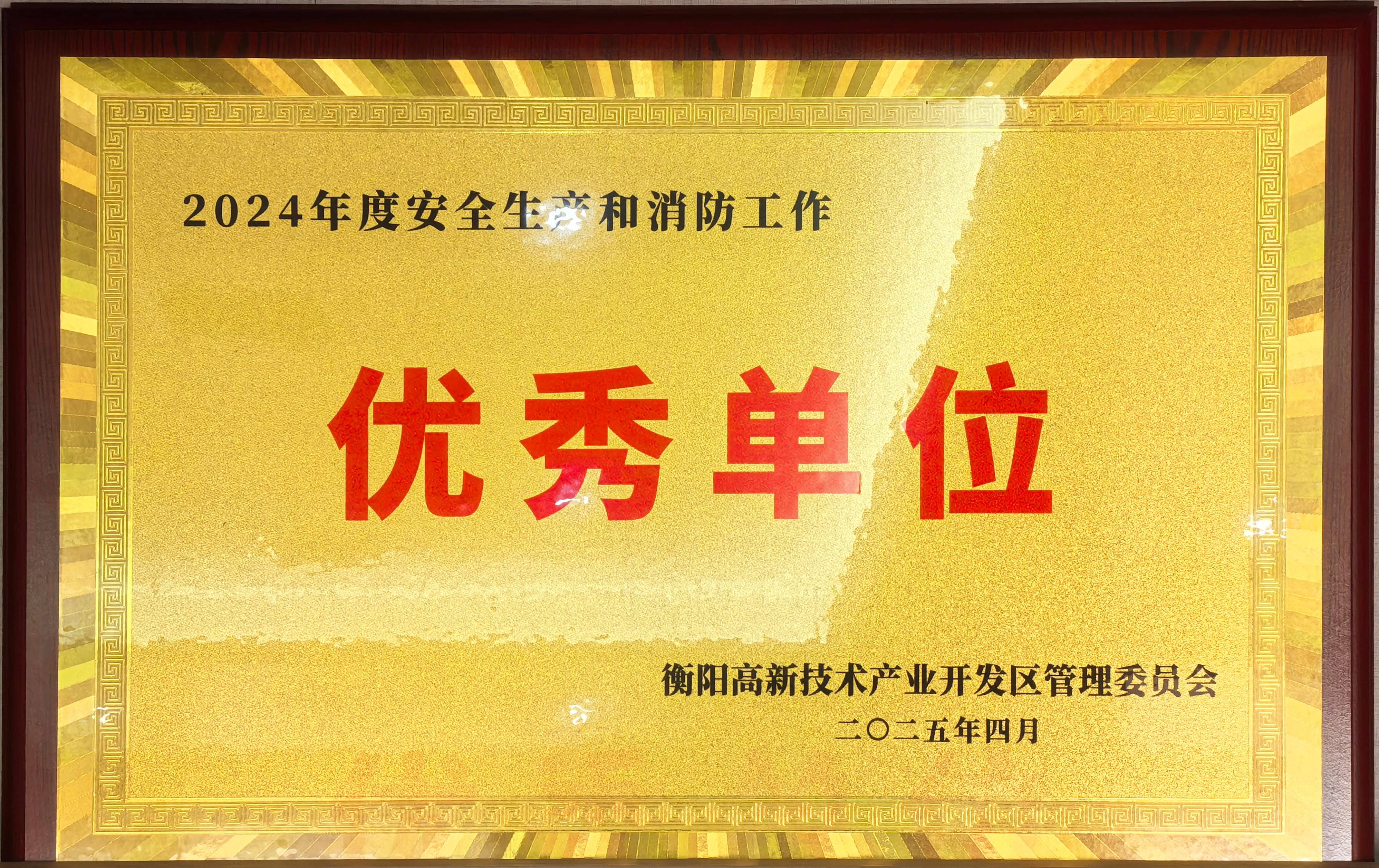 在衡陽市高新區(qū) 2024 年度評優(yōu)中,億輝集團憑借出色表現,榮獲“生產經營單位安全生產和消防工作優(yōu)秀單位”稱號!