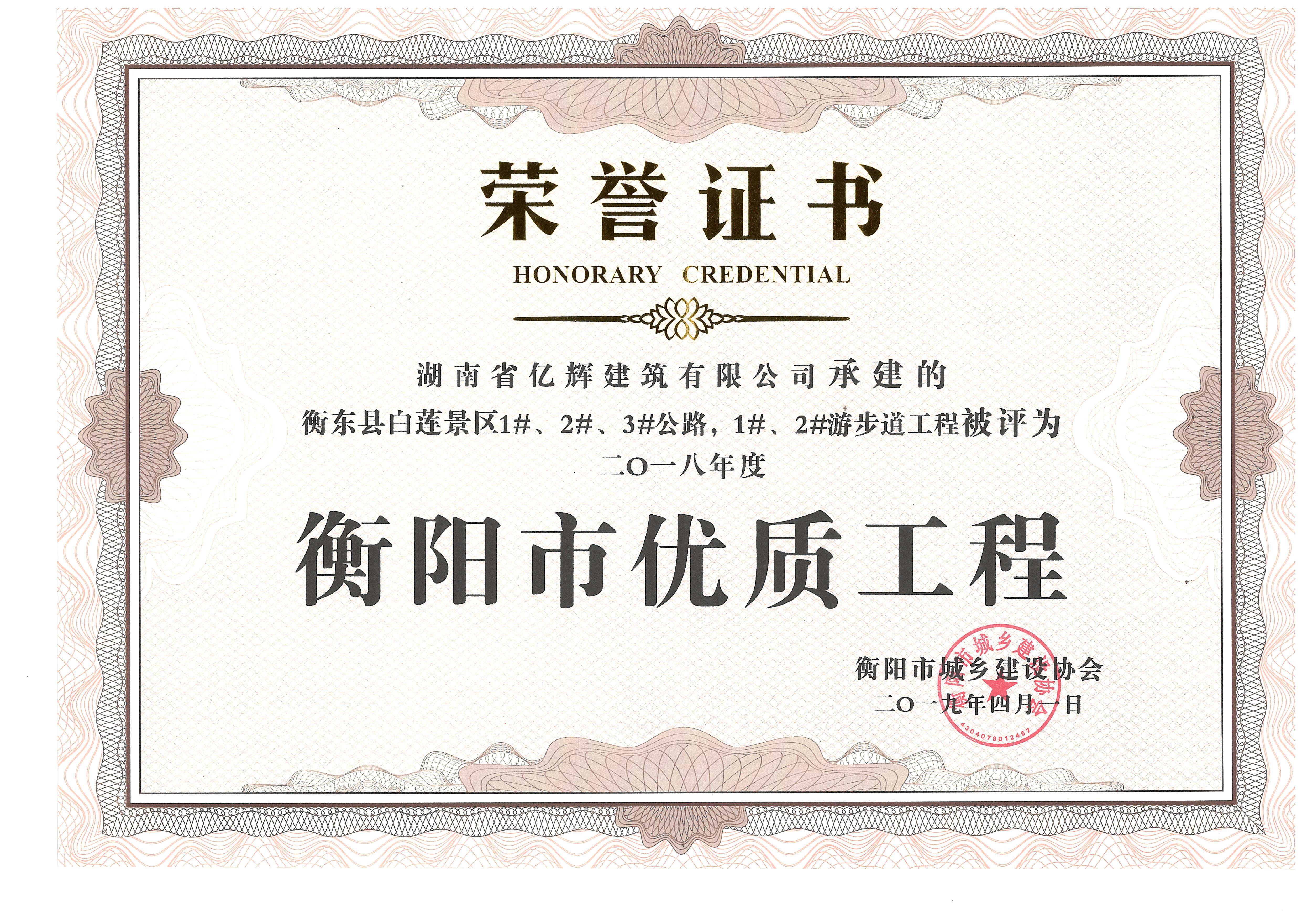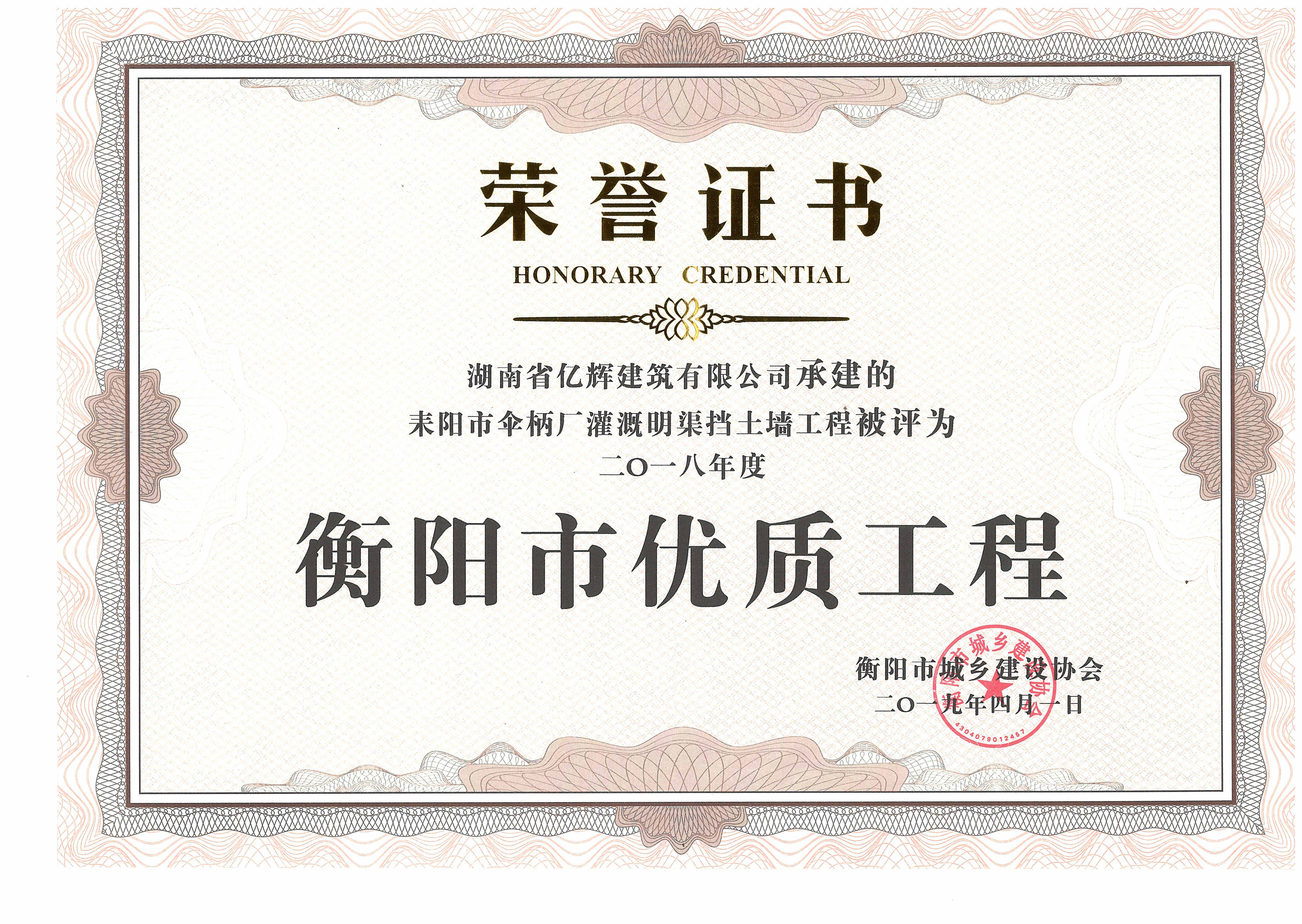 公司四個(gè)項(xiàng)目榮獲“衡陽市優(yōu)質(zhì)工程”獎(jiǎng)