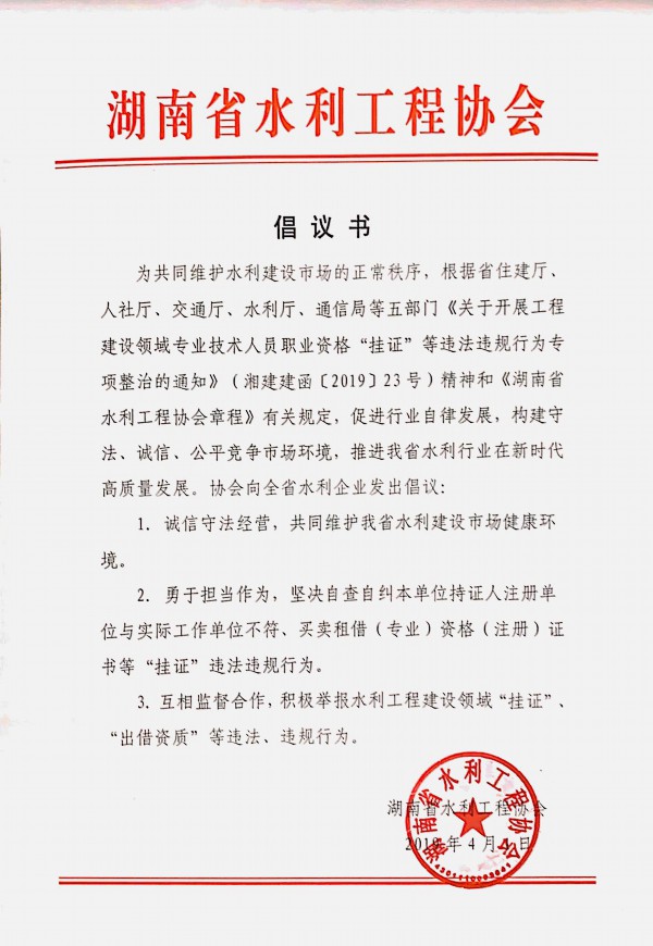 > 轉(zhuǎn)發(fā)湖南省水利工程協(xié)會《倡議書)
